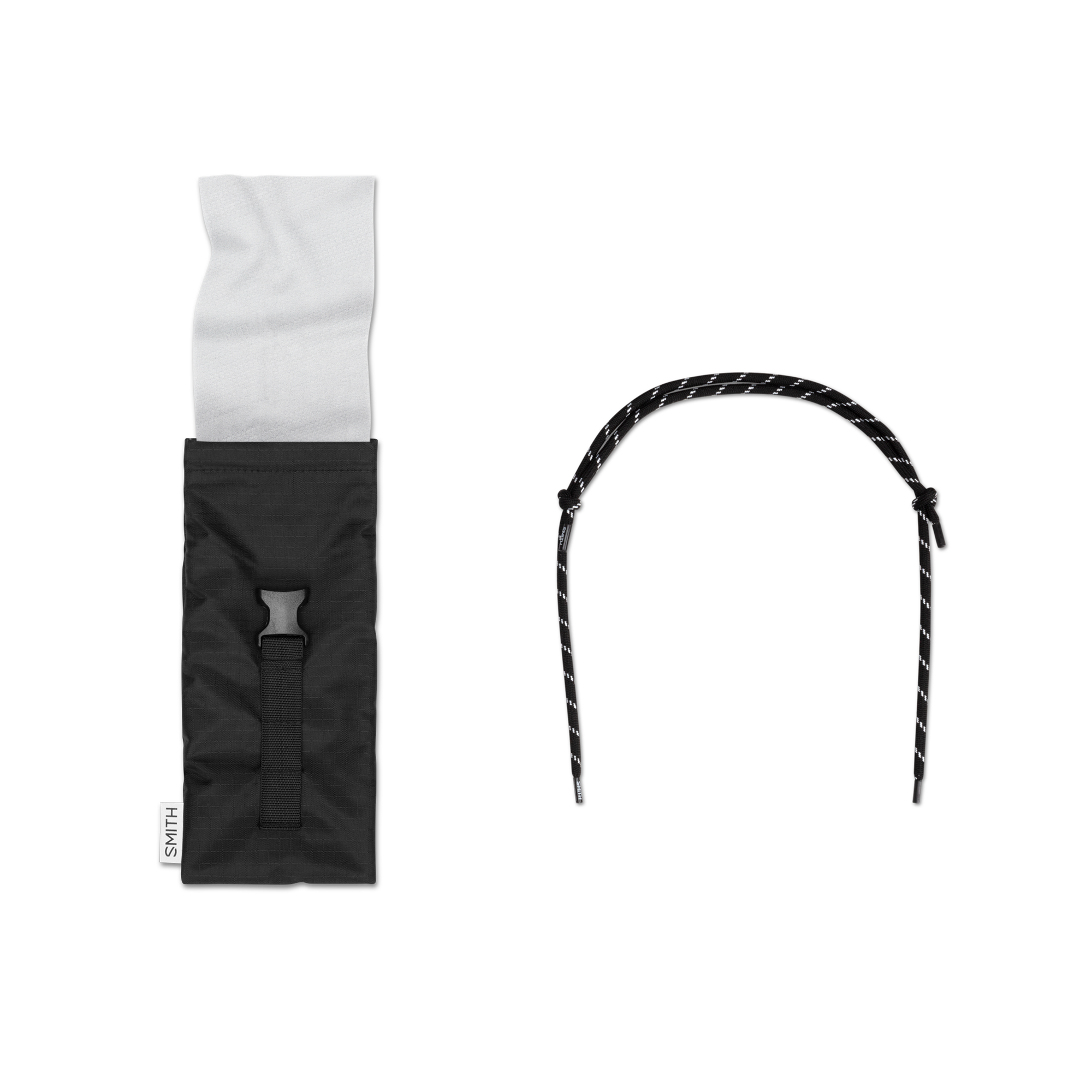 • Custom rolltop buckle pouch with built-in microfiber cloth